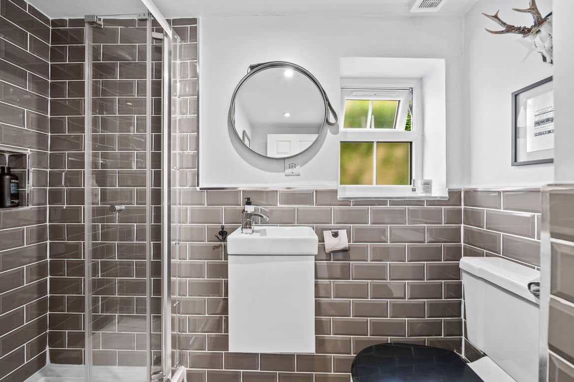 Outside, the private rear garden is a tranquil retreat, ideal for summer gatherings or quiet relaxation, with plenty of room for al fresco dining and greenery.