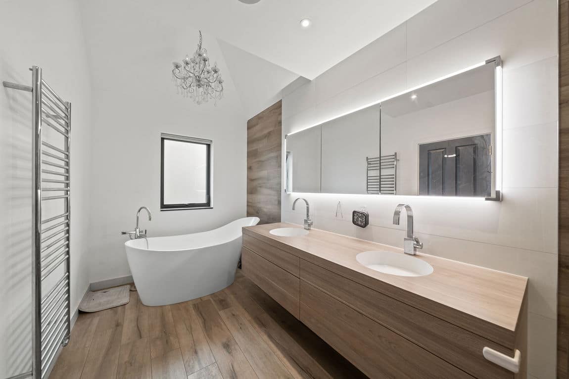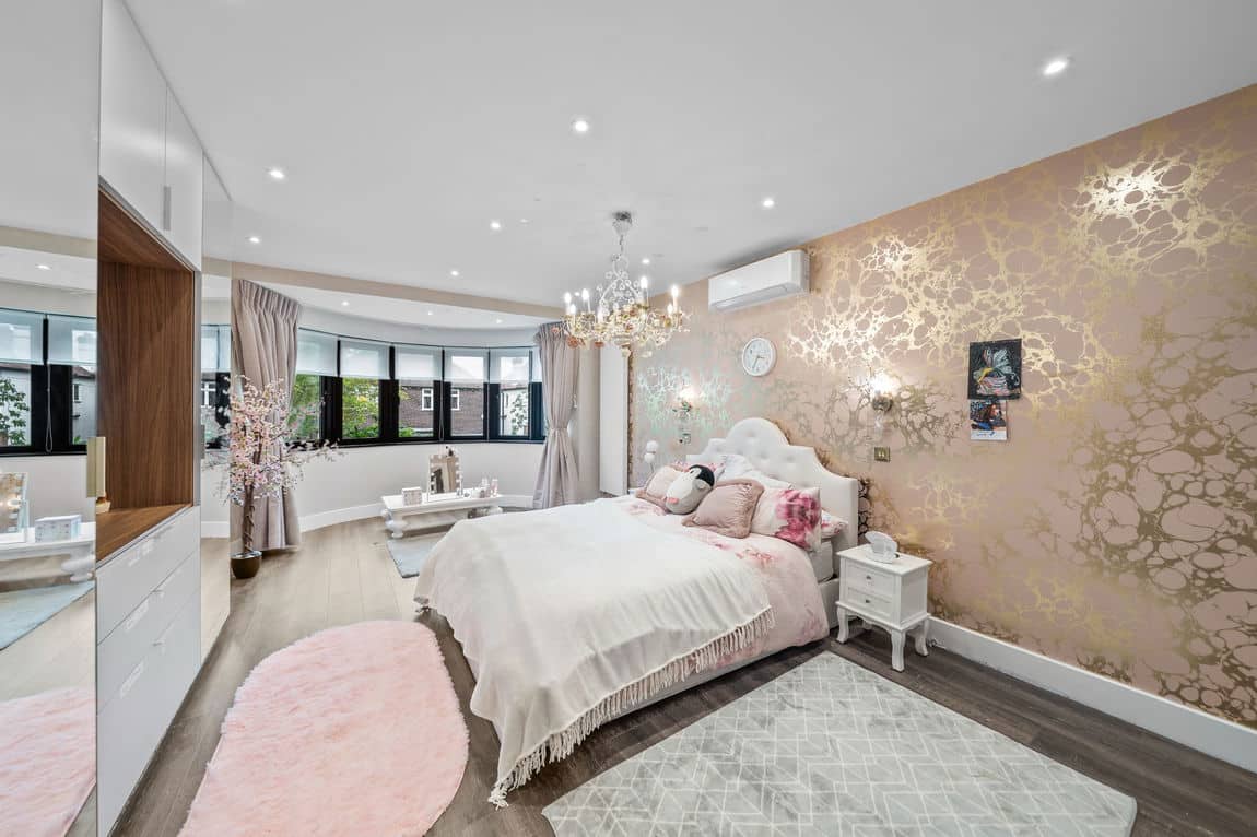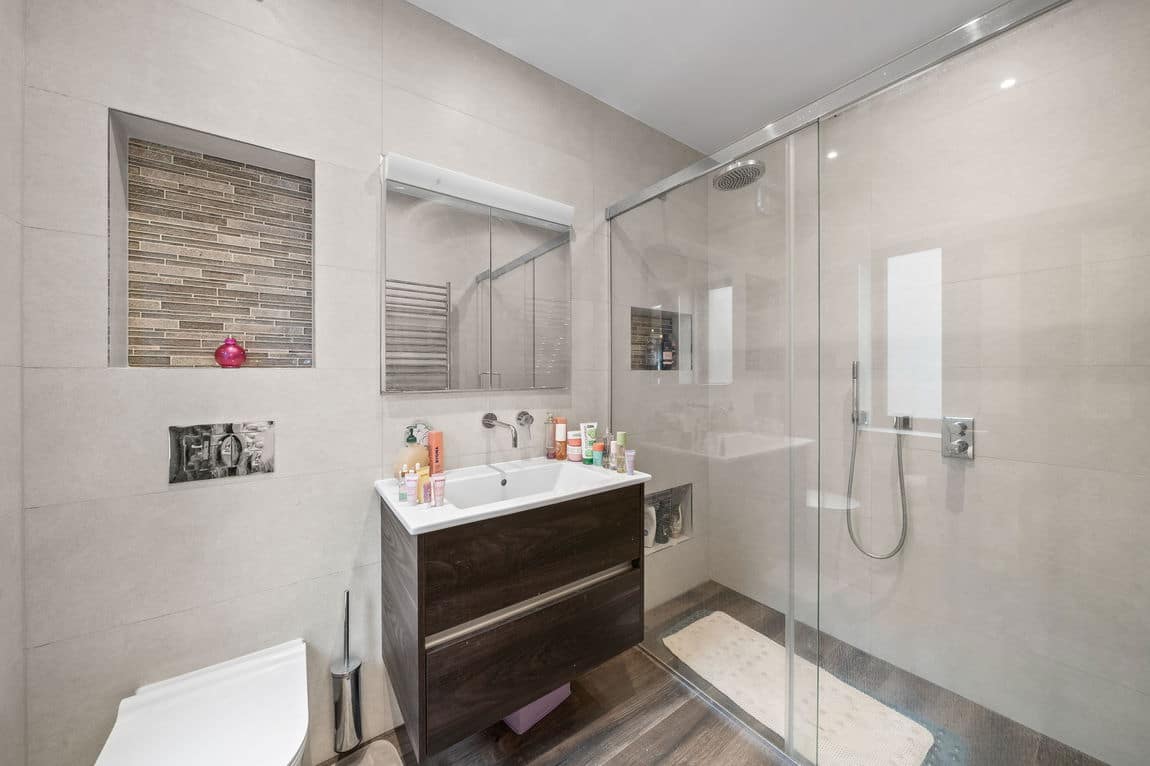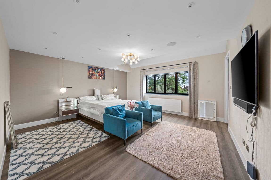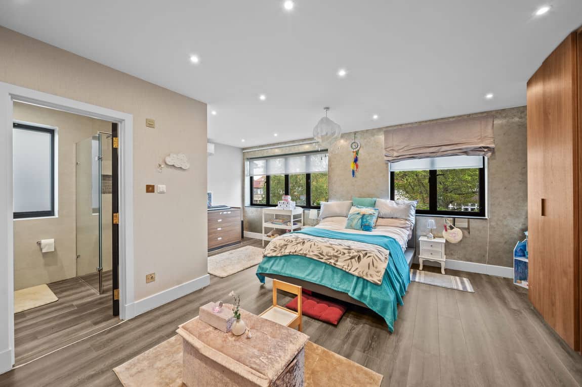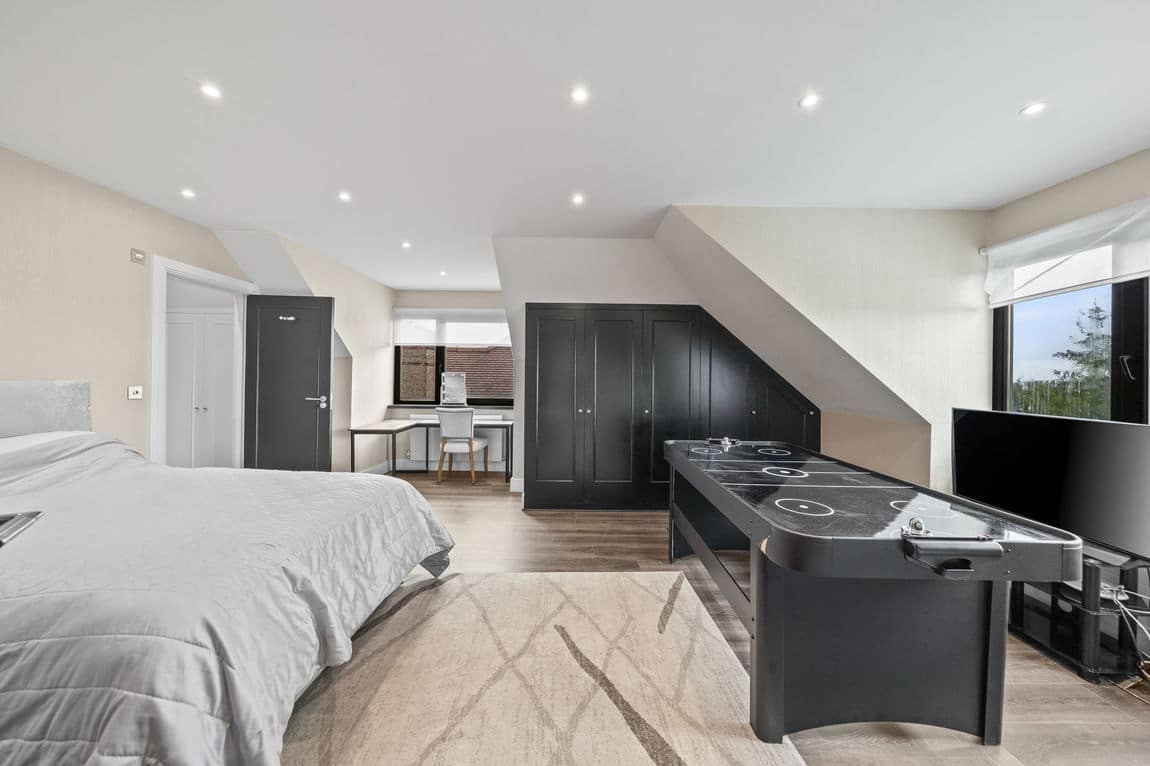 The first floor is dedicated to three superb bedroom suites, including a remarkable principal suite that spans the entire level with bedroom, dressing room and indulgent en suite bathroom. A loft conversion creates a fourth suite with generous storage, ensuring space and privacy for all.