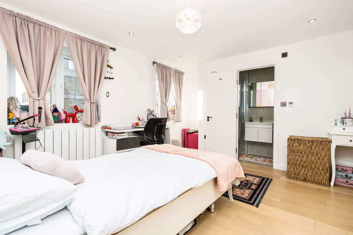 The nearly 9m x 5m reception and dining area opens onto a north westerly facing garden, creating an ideal setting for entertaining. The property has been newly refurbished throughout, including a brand-new kitchen with high-spec built-in appliances. Three of the four bathrooms are ensuite, offering exceptional comfort and convenience.