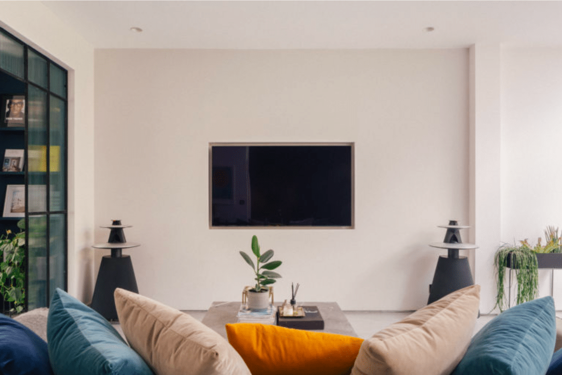 The first floor offers three bedrooms, currently arranged as two generous doubles and a home office with bespoke joinery, alongside a stylish family bathroom incorporating exposed brickwork for added texture and warmth. Throughout the house, intelligent mood lighting is installed and easily controlled at the touch of a button.