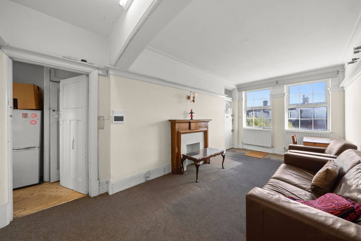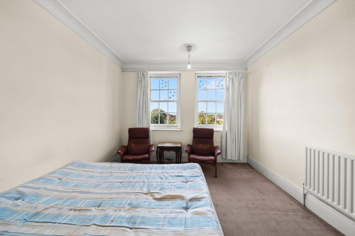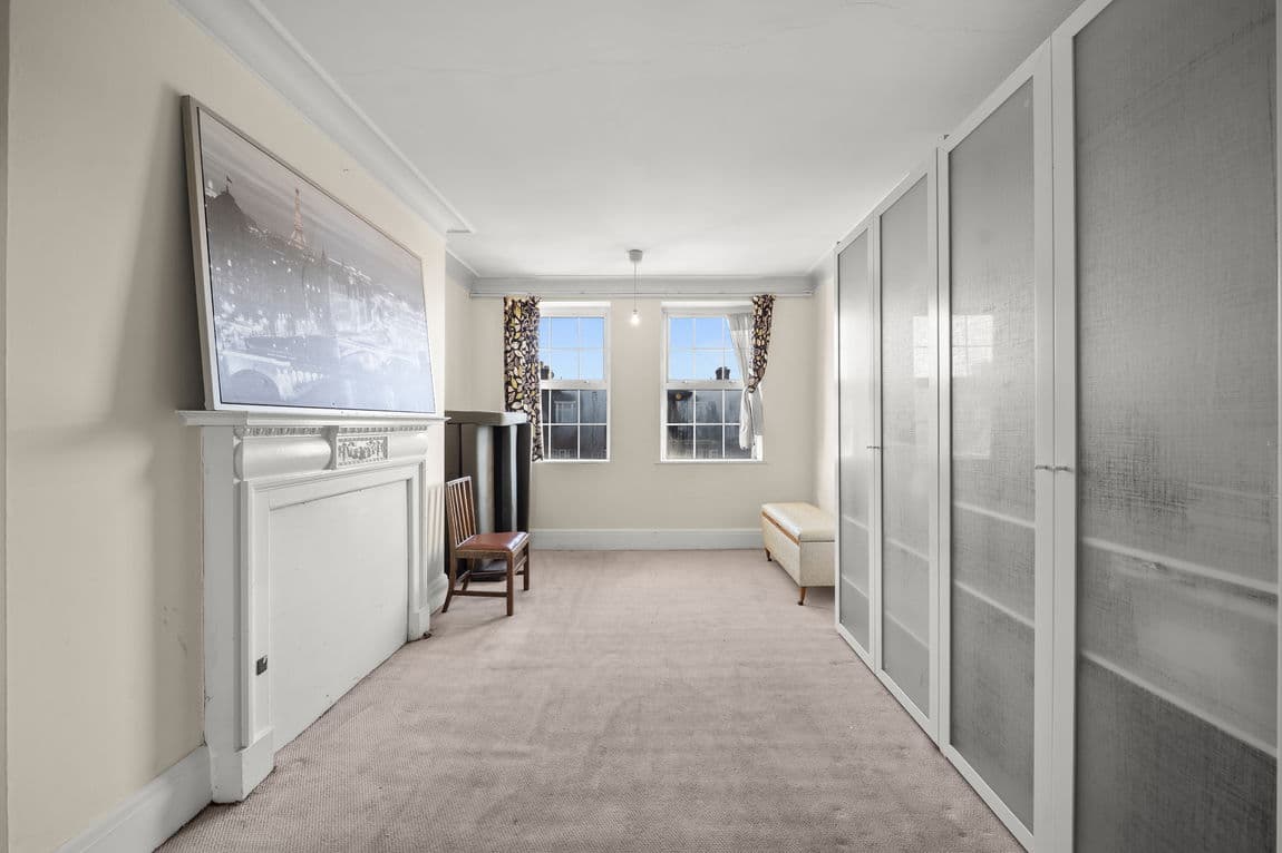 This bright and generously proportioned apartment is arranged over 1,310 sq ft and occupies the third floor of an attractive period mansion block with the convenience of lift access. The accommodation offers flexibility, comprising three/four bedrooms, a spacious reception room with fireplace, a separate eat-in kitchen, a family bathroom with additional WC, and excellent storage throughout the hallway.