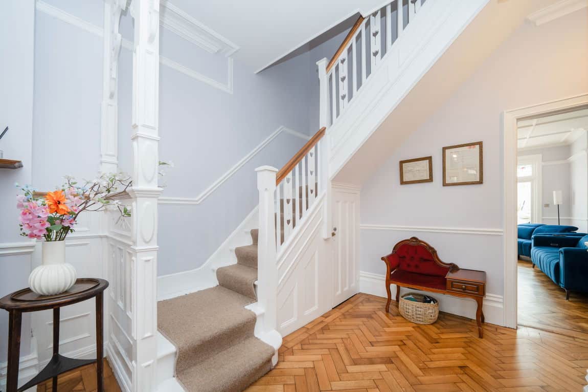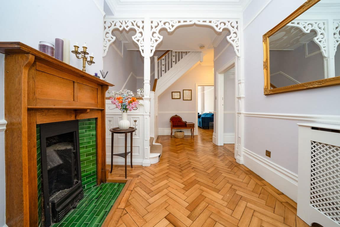 The home exudes grandeur from the moment you step through its original front doors into a strikingly large entrance hall, setting the tone for the space and elegance found throughout. Lovingly reinstated to its original glory while incorporating modern functionality, this residence seamlessly blends period charm with contemporary comfort. Rich in character, it boasts seven original fireplaces, intricate ceiling mouldings, and ornate cornicing, all meticulously preserved to reflect its historical significance.